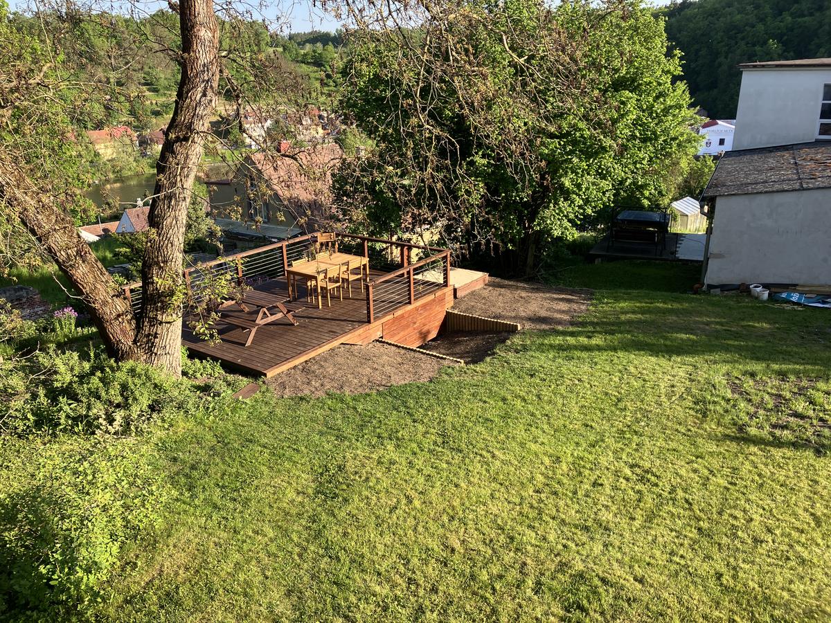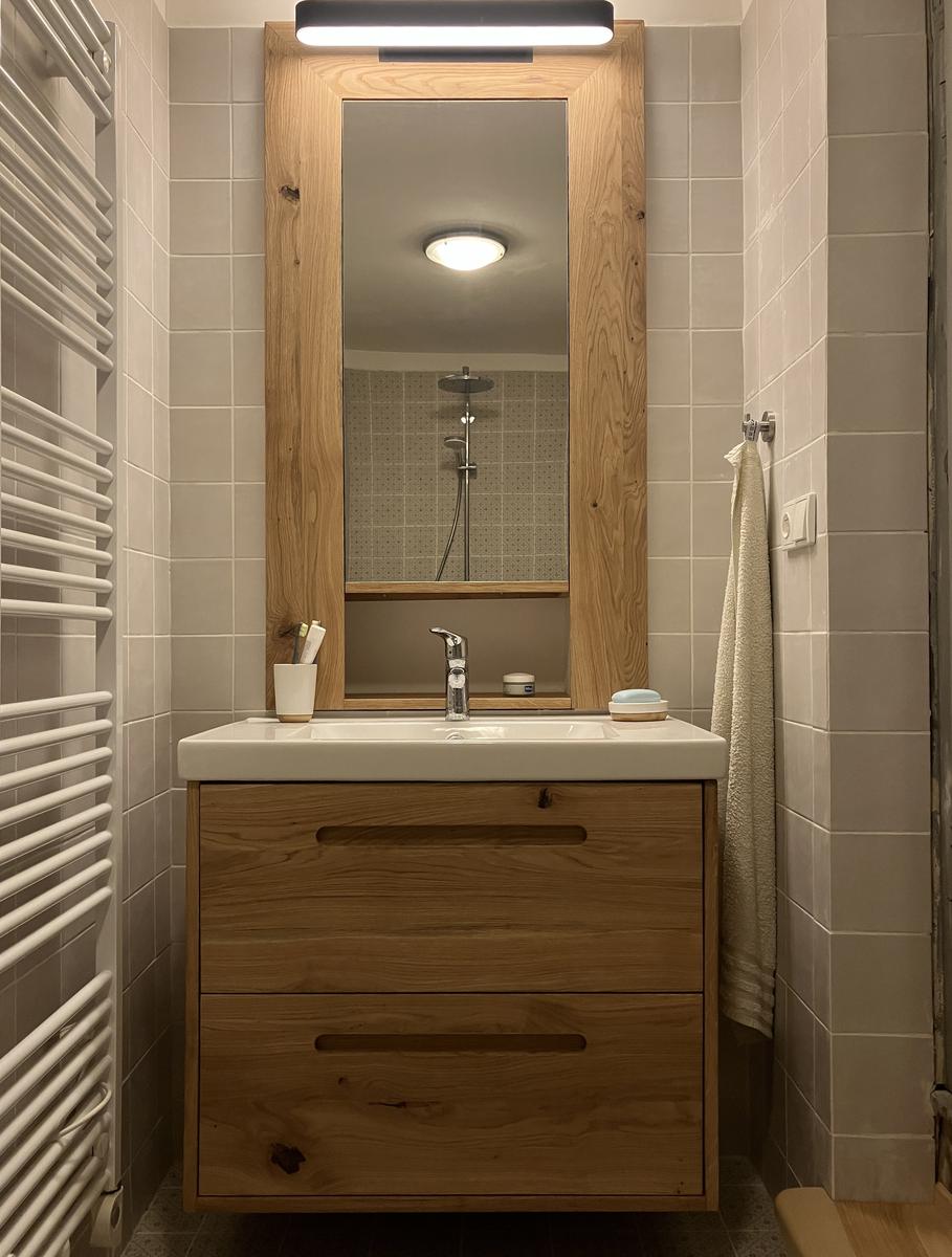 Saunová lavice z termoolše, nosná konstrukce ze smrku.